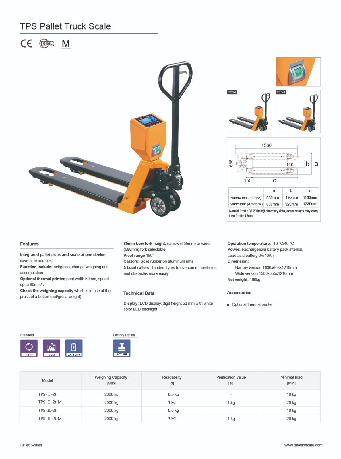 Approval: OIML Capacities:2tx0.5kg; 2tx1kg Display:52mm digits LCD display with white LED backlight Key Board:7 keys mechanical Battery:6V/10Ah Lead-acid rechargeable battery up to 90 hours of continuous use (without backlight);60 hours of continuous use (with backlight)